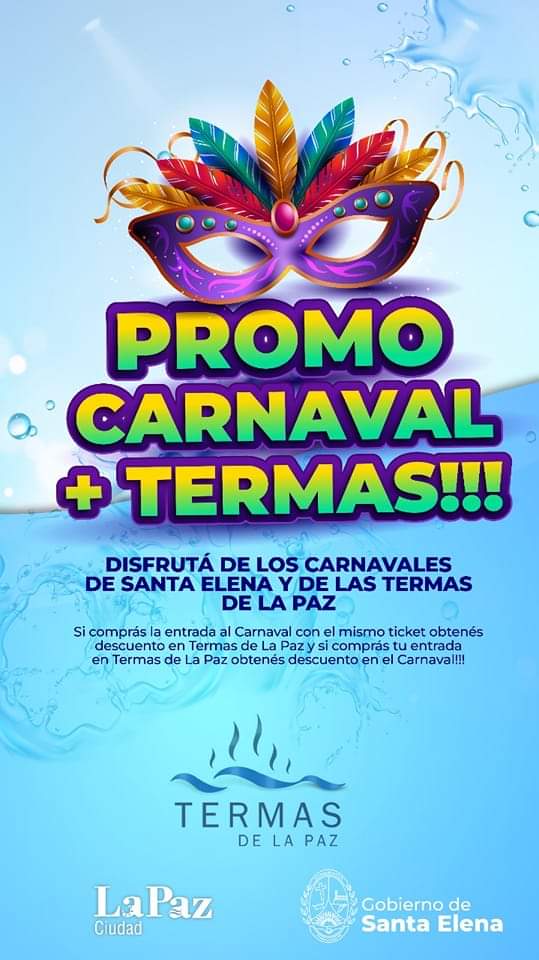 Con tu tickets de termas pagas en el Carnaval de Santa Elena $1.000. Los dias 18 y 20 de Febrero el valor con la promo será de $1.200